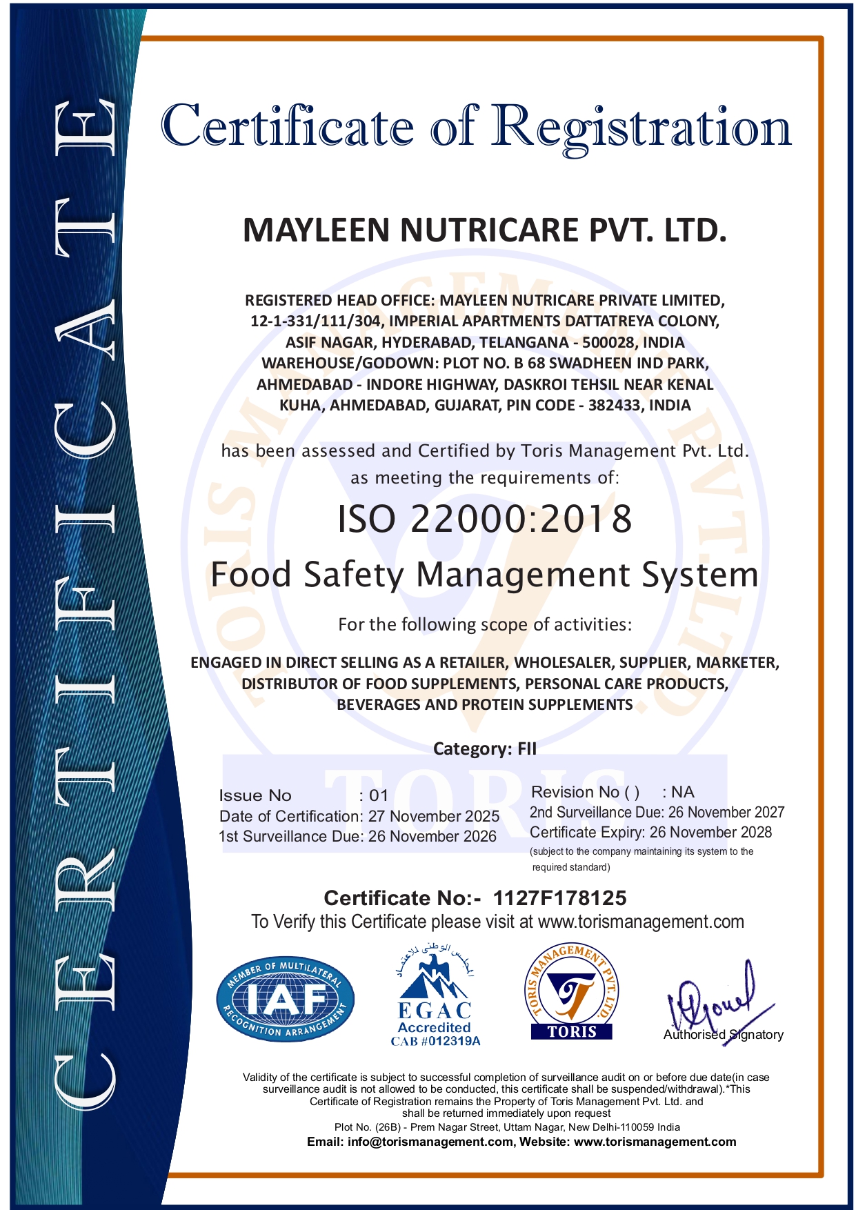 Certificate Of Fssai